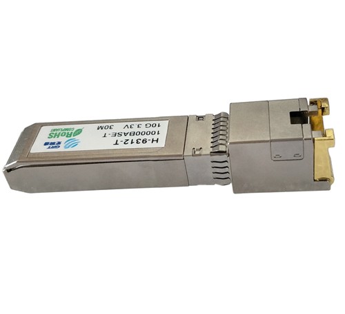 H-9312-T是一款萬兆SFP+電口模塊,其采用RJ45接口,最高速率可達10G,傳輸距離最遠能夠達到30m。萬兆電口模塊主要是集成在交換機、網卡等產品上,廣泛應用于萬兆以太網中。